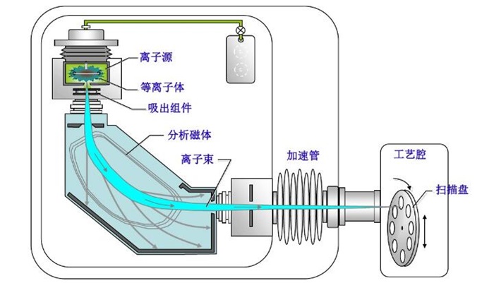 加速器:離子注入需要使用一個離子加速器。在這個裝置中,離子源產生離子束,然后通過電場加速這些離子,使它們獲得足夠的能量。